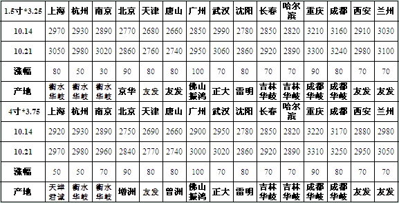 本周全国主要城市焊管价格继续上涨,成交一般。据Mysteel盘点数据显示:全国15个主要城市4寸焊管平均价格为2978元/吨,较上周五(10月14日)平均价格2913元/吨价格上涨65元/吨。